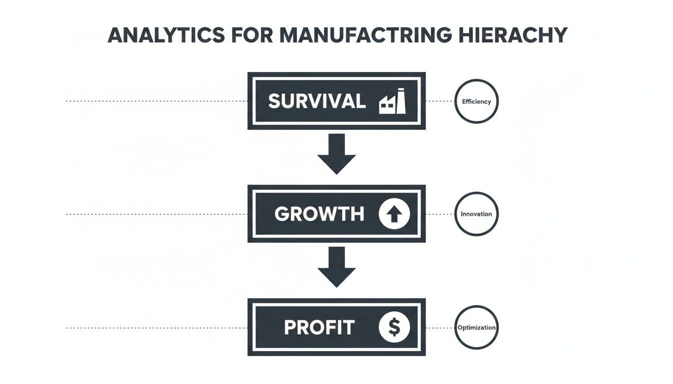 This hierarchy shows how moving up the analytics ladder directly supports your business goals, taking you from just surviving to achieving sustainable growth and profit.