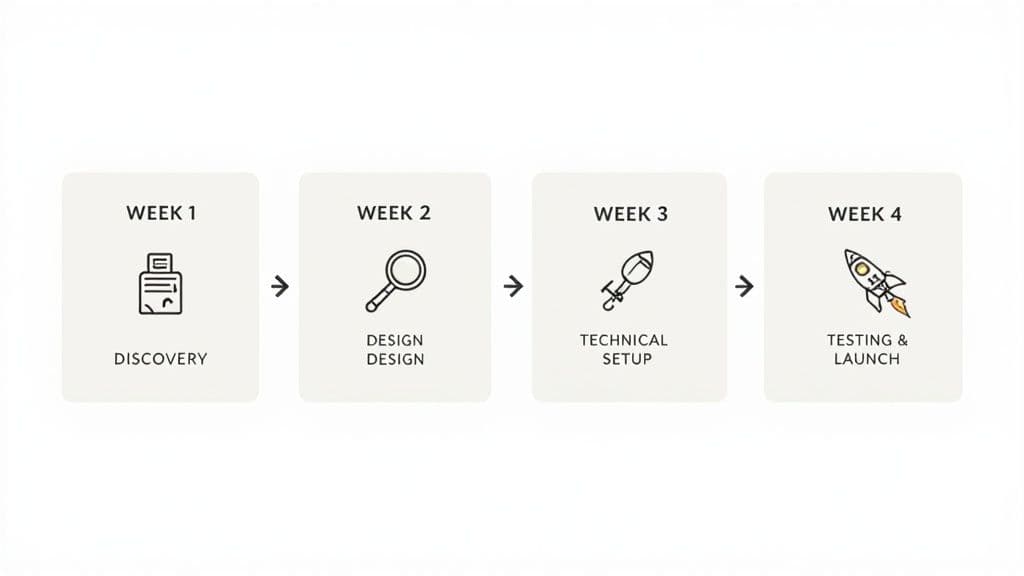 Putting a plan into action can feel like a huge leap, but launching your first HR chatbot doesn't have to be a six-month ordeal. You can go from idea to a live, helpful tool in a focused, four-week sprint. This roadmap breaks it all down into manageable weekly chunks, making a successful launch feel much less intimidating.