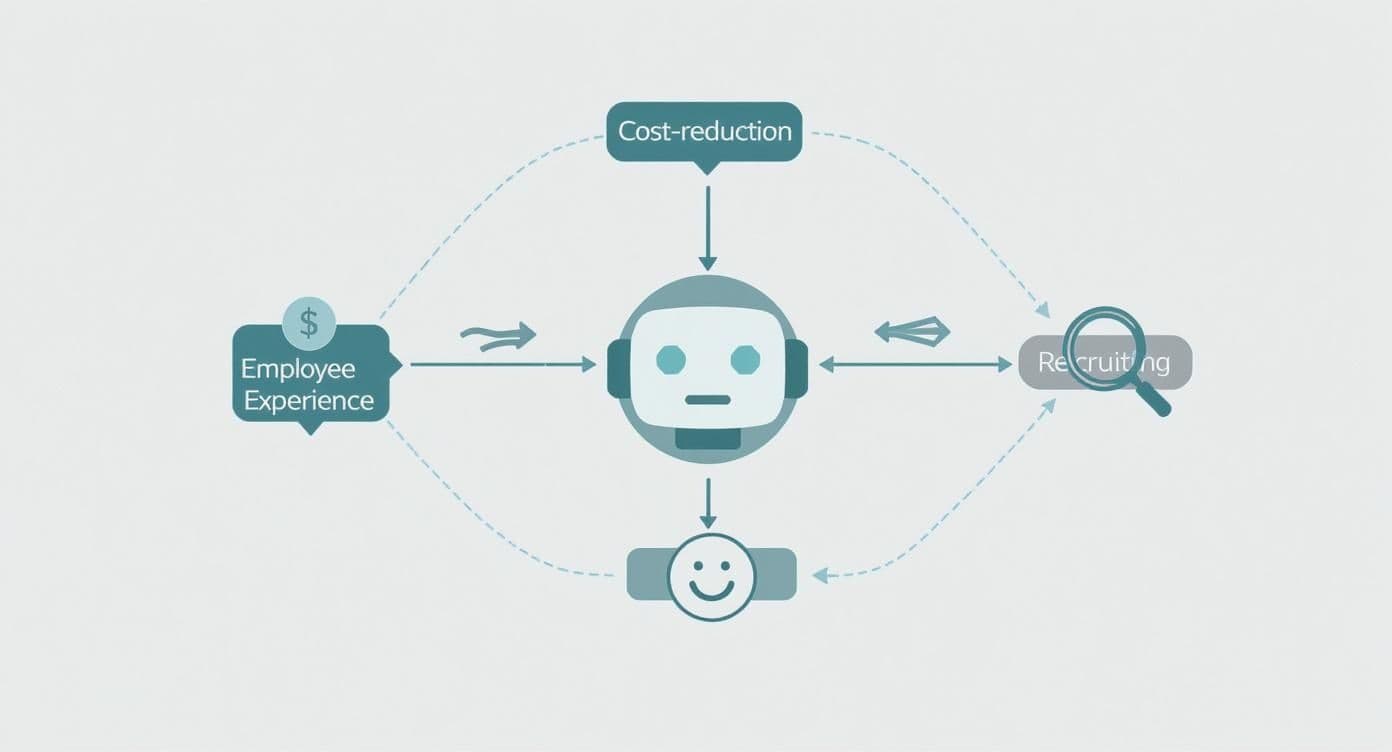 Bringing a chatbot into your HR department is about more than just clawing back a few hours in the day. It delivers a real, measurable return on investment (ROI). While giving your team more breathing room is an obvious win, the true value shows up in three key places: direct cost reduction, a seriously better employee experience, and supercharged recruiting.