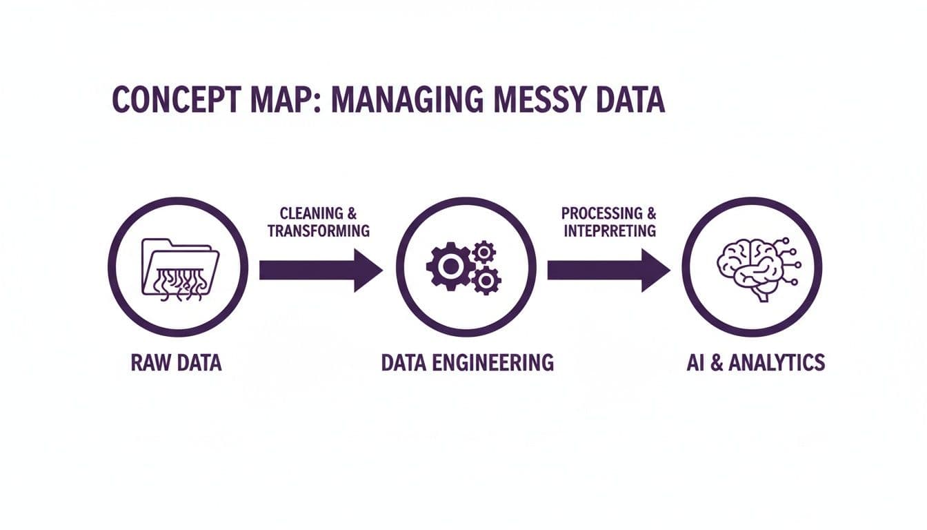 This visual shows the powerful transformation data engineering makes possible, turning chaotic raw inputs into a structured foundation for smart business decisions.